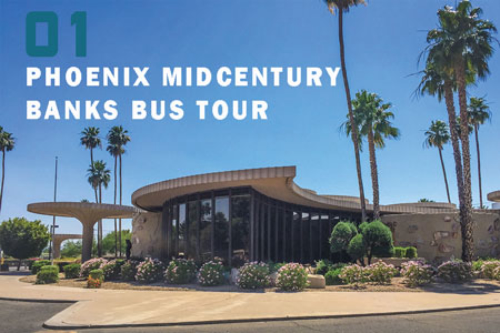 Join Phoenix's expert on midcentury banks for a tour of four former and active midcentury banks by Pereira & Luckman, Weaver & Drover, Al Beadle, and Frank Henry. See how an aggressive design-focused program of growth at midcentury resulted in spectacular examples of organic architecture and regional modernism. A light lunch will be provided by Postino Highland. Transportation from midtown symposium hotel district is provided.