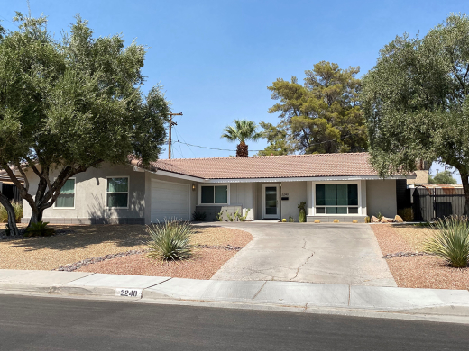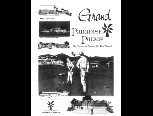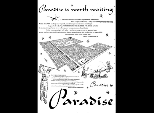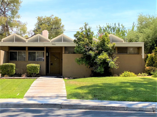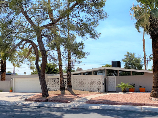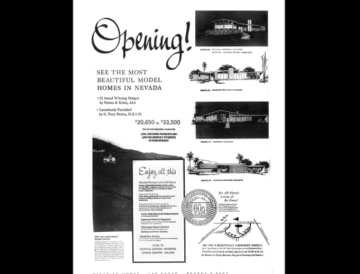 Due east of the Las Vegas strip lies one of the most well-known treasure troves of midcentury homes in Las Vegas: Paradise Palms. In 1960, fresh off their build of nearby Sunrise Hospital, local developers Irwin Molasky and Merv Adelson (who later in the decade would form Lorimar Television Productions) formed Paradise Development Corporation and Paradise Homes, with the intention of opening up Las Vegas’ Paradise Valley east of Maryland Parkway along Desert Inn Road for development and creating a wide-range of upscale housing on a 720-acre plot of vacant desert. The duo would build what is widely regarded as the first master planned community in Las Vegas, complete with schools, shopping, housing and recreation. At the heart of the community was the Stardust Golf and Country Club (later becoming the Sahara, Hilton, and today the Las Vegas National Golf Club). Land for an elementary school was set aside at the center of the community, while strips along Desert Inn Road were reserved for apartments and offices, and acreage along Maryland Parkway was planned for Nevada’s first regional indoor shopping center, the Parkway (named Boulevard at opening) mall.