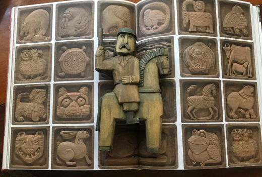 The Ackerman’s life-long collection of folk art, books and artworks was a feast for the eyes. Every wall unit, shelf and cabinet was filled with color and texture. The majority of their own work was snapped up by early bird collectors and dealers but there were a few remaining pieces of ceramics and wood panels that I was delighted to be able to see in person. I felt quite overwhelmed as I moved quickly from room to room picking things up, putting them back and then picking them up again. My eyes were certainly more enthusiastic than my wallet. In the end, I left with a curious collection of odds and ends that I didn’t quite understand at first.